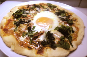 ほうれん草と半熟タマゴとモッツレラのピザ。